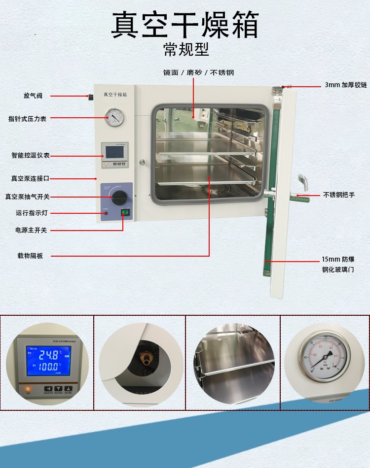 采用進口激光、數控加工設備生產的產品,供工礦企業、化驗室、科研單位等做干燥、烘培熔蠟、脫泡用。
