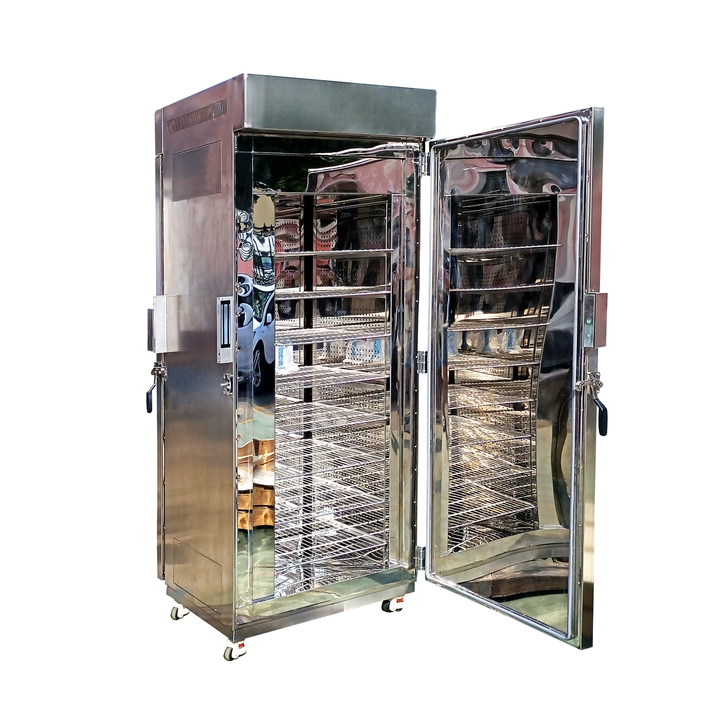 循環(huán)方式:雙風道循環(huán)系統(tǒng)(內(nèi)循環(huán)+外循環(huán)),外循環(huán)采用開透氣孔的方式實現(xiàn),采用多個大型離心風葉,循環(huán)風速高